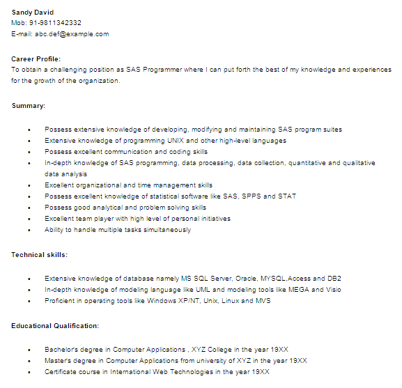 SAS Programmer / Developer - Free Resume Template from 1.bp.blogspot.com The goal of the header section is to present the recruiter with the right information about you at a glance. Here's how much experience you should list and what to include in job here are two examples of how to write resume experience sections. How to help your users from feeling like they've landed in a strange place? Here are some tips to help you showcase this information. The experience section of your resume includes your employment history. You must show how your skills and experiences meet the qualifications and requirements listed in the job announcement to be considered for the job. Highlighting these types of volunteer experiences will show employers how well you can work under pressure, and how capable you are of completing tasks, even in tricky situations. Users can often tweak their own personal workspace, such as a dashboard or task list, to show only.